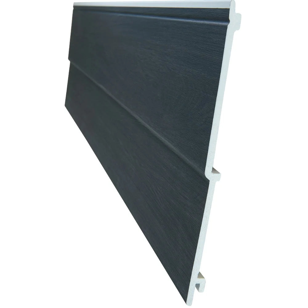 NatureClad 270mm Double Feather Edge cladding profile for horizontal installation with a textured, woodgrain, super-matt foiled finish.